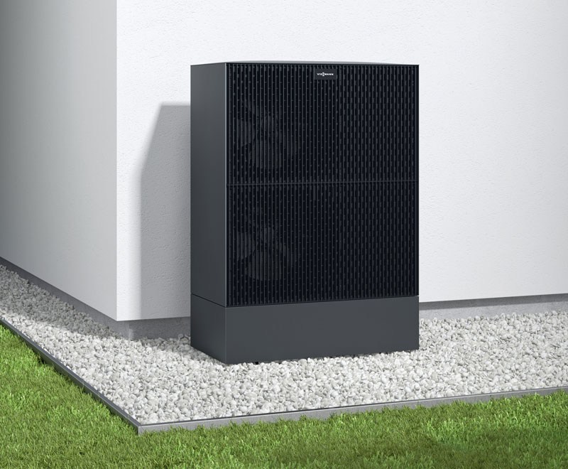Niezawodne, kompaktowe i przyjazne dla środowiska – dzięki nowej, innowacyjnej technologii pomp ciepła firmy Viessmann ciepło pochodzące z otoczenia może być szczególnie efektywnie wykorzystywane do ogrzewania i chłodzenia budynku. Z temperaturą na zasilaniu do 70°C pompa ciepła Vitocal 25x-A jest idealnym rozwiązaniem do modernizacji. Istniejące grzejniki mogą być nadal używane. Urządzenie przekonuje wysoką wydajnością energetyczną, wygodną obsługą z poziomu aplikacji ViCare, bardzo cichą pracą i atrakcyjnym wyglądem.